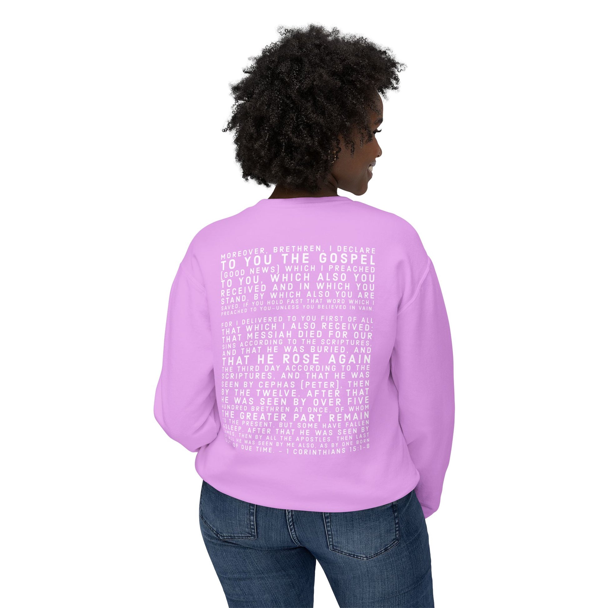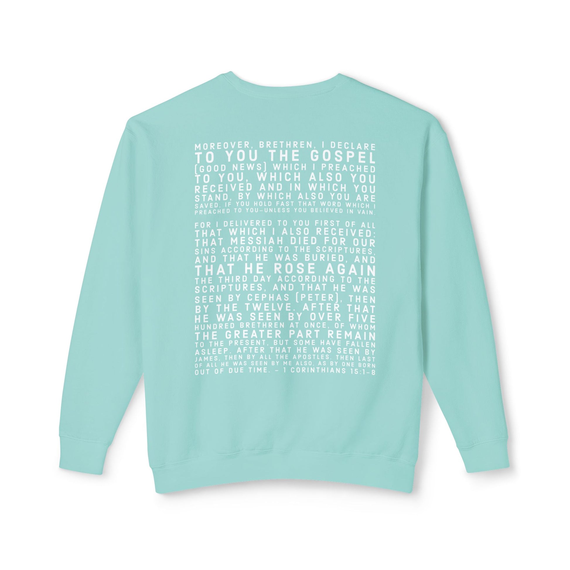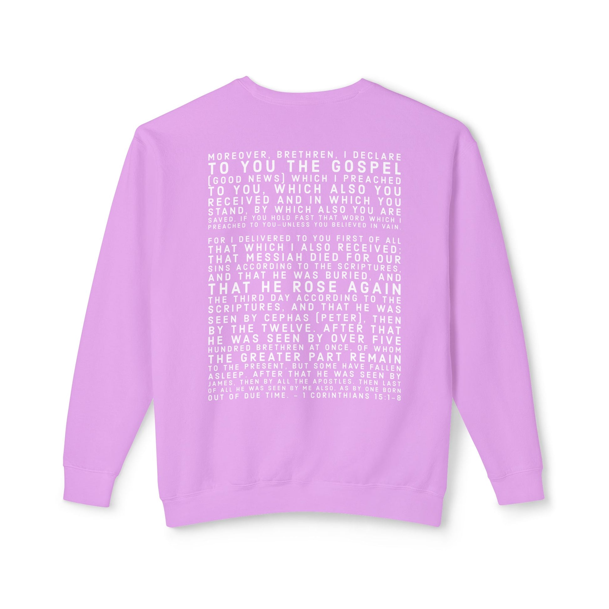 'I declare to you the gospel' - Back Text, Light Lettered Edition - (10 Color Options) - Adult Unisex Lightweight Crewneck Sweatshirt