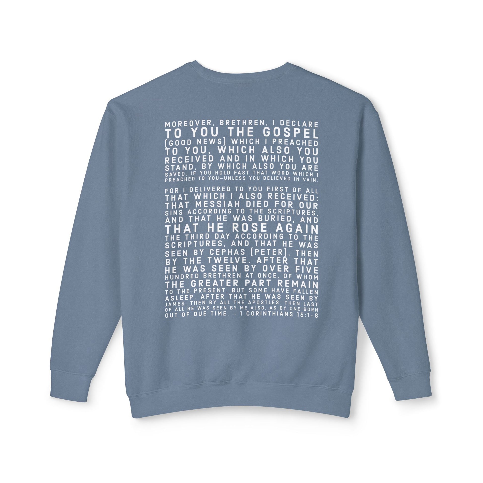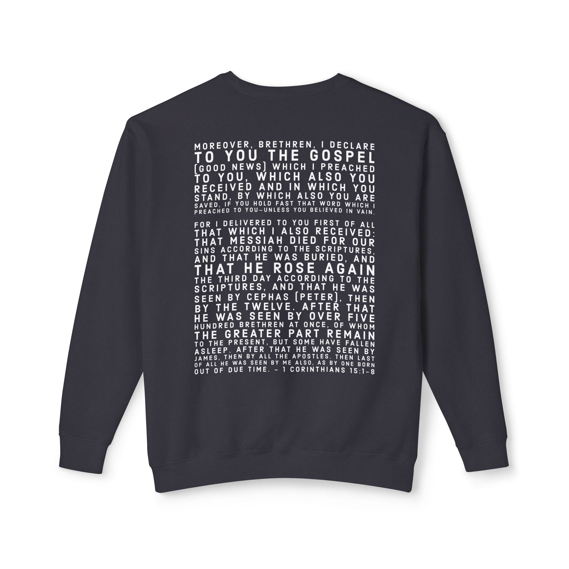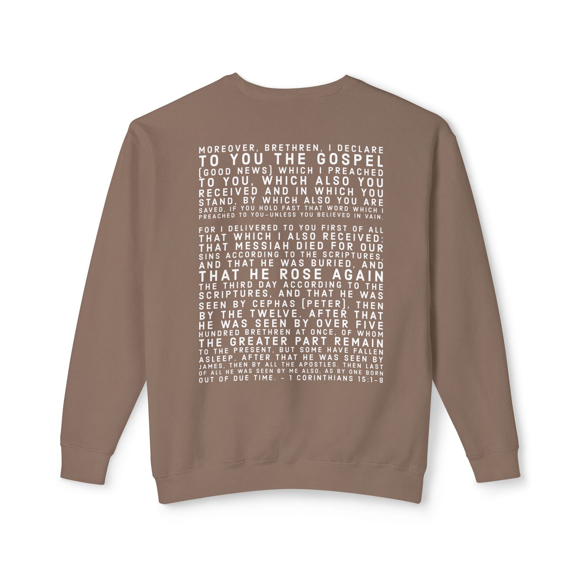 'I declare to you the gospel' - Back Text, Light Lettered Edition - (10 Color Options) - Adult Unisex Lightweight Crewneck Sweatshirt