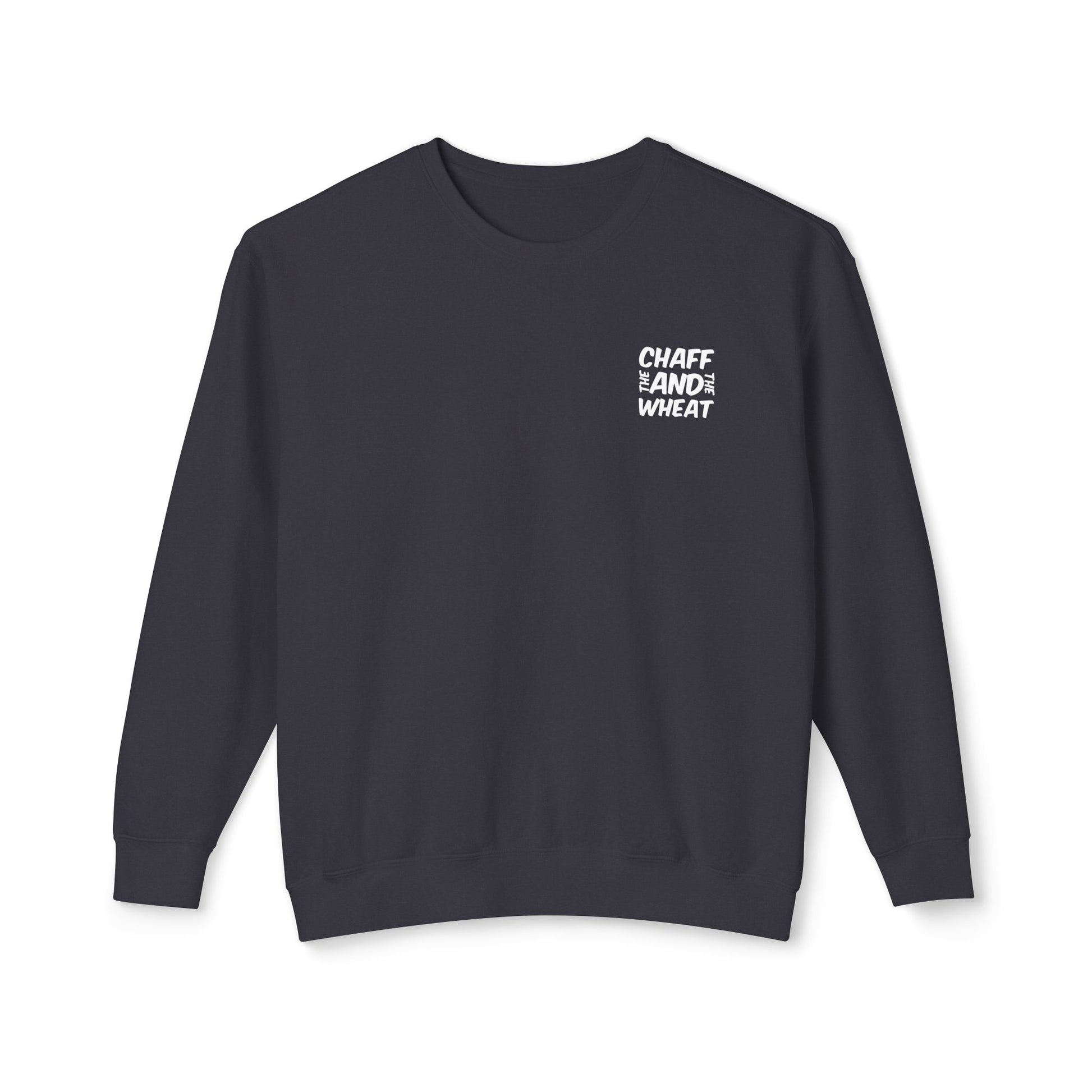 This crewneck sweatshirt features the light-lettered verse text on the back.