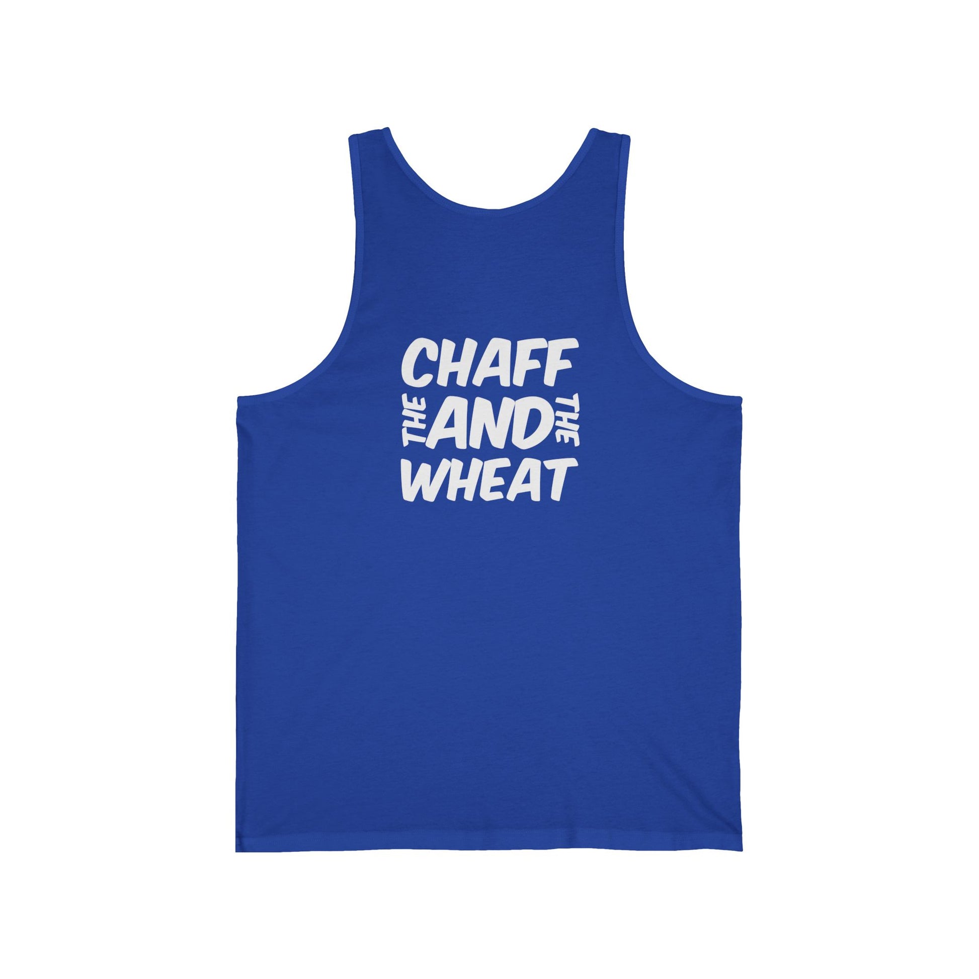 This unisex jersey tank top features the light-lettered verse text on the front.